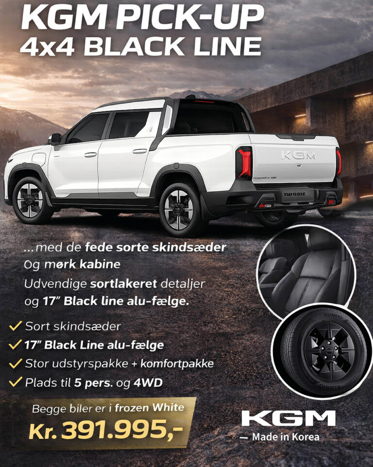 Vi har 2 stk. KGM Musso 4×4 BlackLine til levering i feb. md.