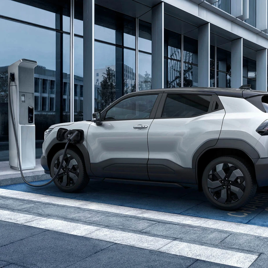 Med en længde på 4,3 meter er Suzuki e Vitara 9 cm længere end den nuværende Vitara-model, mens akselafstanden er hele 20 cm længere. Det betyder, at der er rigtig god plads på for- og bagsæderne. SUV-designet giver sammen med de brede fordøre, gode adgangsforhold, og den høje siddeposition vil falde i god smag hos mange.